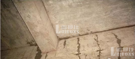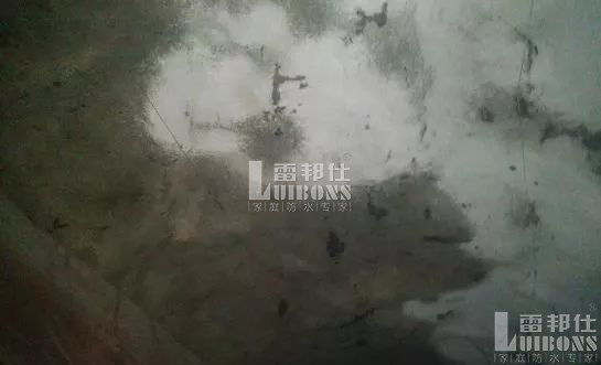 大面積慢滲(無明顯水眼)約在3~5分鐘左右,才發現有濕痕現象。相隔一段時間,集聚成一小片水。其處理方法。可先將明顯漏的部位用硅酸鈉與水泥按1:2的比例拌成膠漿堵漏止水。對滲漏不明顯的部位將裂縫用氯化鐵防水砂漿按重量1:2.5:0.03:0.5(水泥:砂子:氯化鐵防水劑:水灰比)一一勾縫處理,遇有漏水處防水砂漿不能粘合時,可任其沖掉.待砂漿凝固后,可再用硅酸鈉與水泥拌合堵眼止水。